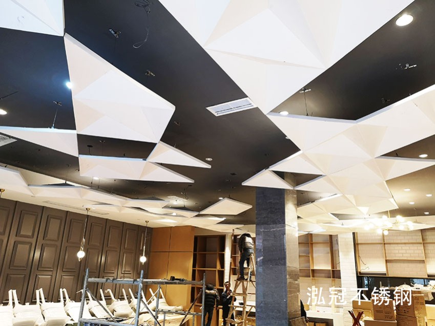 2. 吊頂主要采用不規(guī)則立體三角形組成,每個組成部分都給人一種異形錯感,交替相映,顯得高端大氣上檔次!